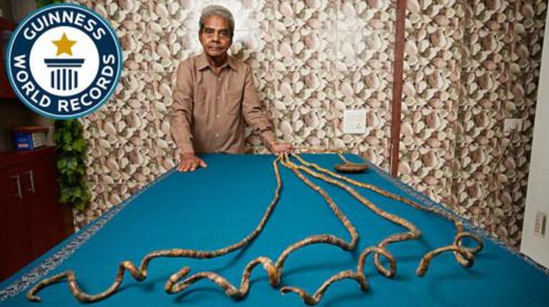 最长的指甲纪录保持者是什里达尔·奇拉尔,他是一名印度人,他虽然只有一只手留了长指甲,但是却依旧获得了指甲最长者的记录,可能是因为两个手都留指甲的话不方便行动,所以他只留了一只手的,他的手指甲比伦敦的公交车还要长一点,非常令人震惊。