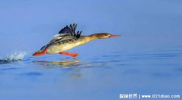 - 湖畔追逐:红胸秋沙鸭的飞行突袭